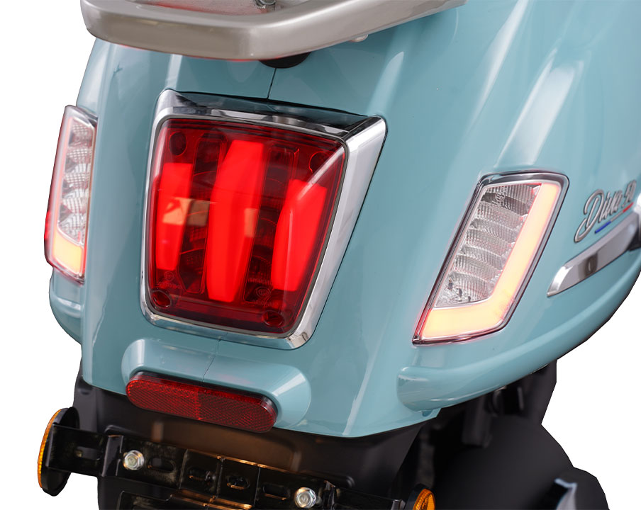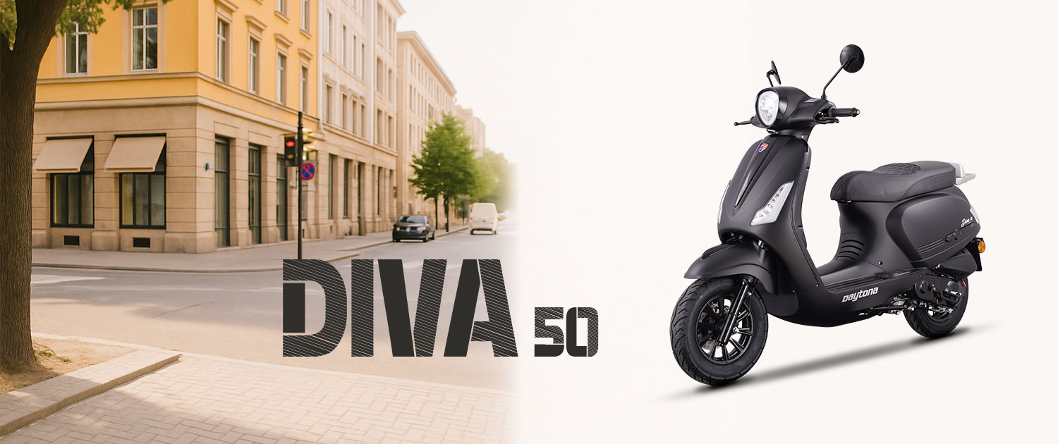 Ο LED προβολέας τύπου “diamond” και τα LED φλας αναδεικνύουν τη μοναδικότητα της DIVA, προσφέροντας εντυπωσιακό φωτισμό, άριστη ορατότητα και premium στιλ σε κάθε διαδρομή.