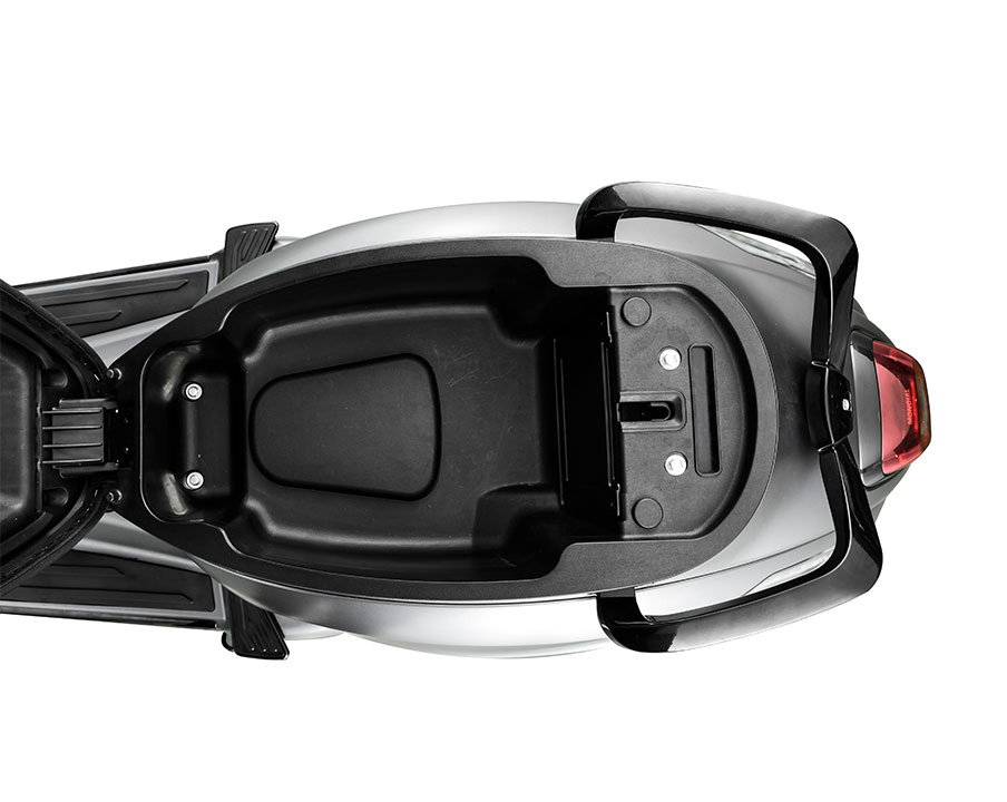 Ο χώρος κάτω από τη σέλα προσφέρει γενναιόδωρη χωρητικότητα, ιδανική για την αποθήκευση κράνους και άλλων προσωπικών αντικειμένων, εξασφαλίζοντας πρακτικότητα και άνεση στην καθημερινή χρήση.