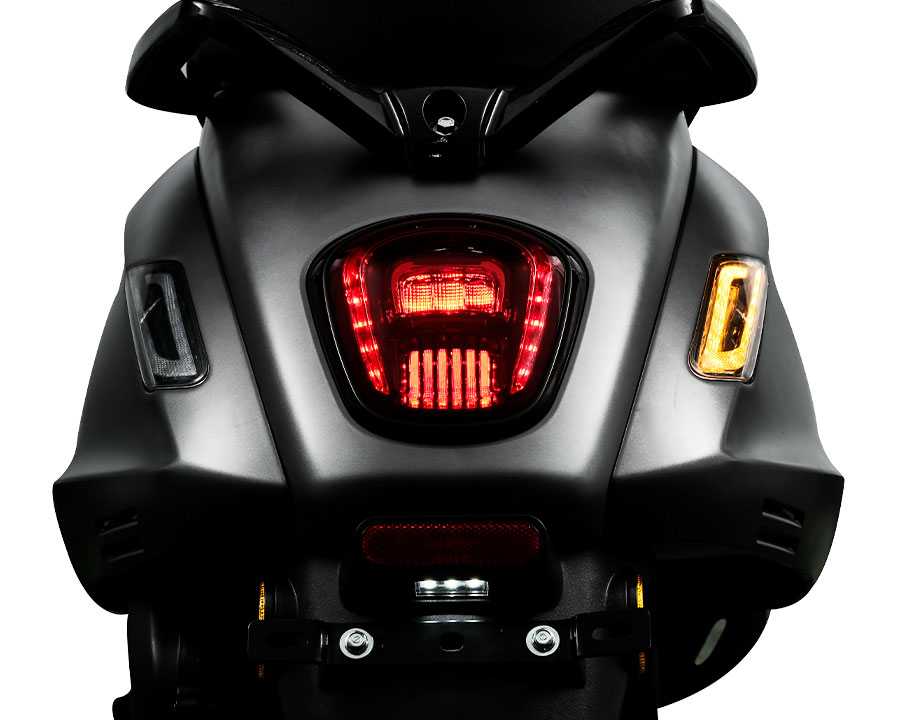 Το πίσω φωτιστικό σώμα σε σχήμα δάκρυ αποπνέει retro κομψότητα, αναδεικνύοντας τον διαχρονικό σχεδιασμό της DONNA 125. Εσωτερικά, ο φωτισμός LED με τη μοντέρνα διάταξη προσθέτει ξεχωριστό στυλ και δυναμισμό στην εμφάνιση. Τα κομψά τοποθετημένα φλας στην ουρά ενσωματώνονται αρμονικά, προσδίδοντας πολυτέλεια και ολοκληρώνοντας την εντυπωσιακή εικόνα του scooter.
