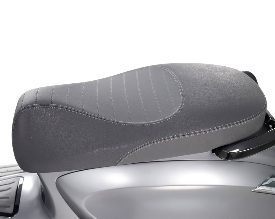 Η σέλα της DONNA 125 ξεχωρίζει για τον προσεγμένο σχεδιασμό και την υψηλή ποιότητα κατασκευής. Η φαρδιά επιφάνεια προσφέρει άνεση στον αναβάτη και τον συνεπιβάτη, ενώ η ραφή και η υφή της ενισχύουν την αισθητική του scooter.