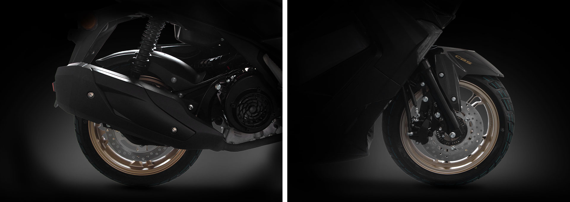Το Invador διαθέτει δισκόφρενα τόσο στον εμπρός όσο και στον πίσω τροχό, με διάμετρο 230mm και 240mm αντίστοιχα, εξασφαλίζοντας ισχυρή και προοδευτική πέδηση. Το συνδυασμένο σύστημα πέδησης CBS κατανέμει αποτελεσματικά τη δύναμη των φρένων, μειώνοντας τις αποστάσεις ακινητοποίησης.
