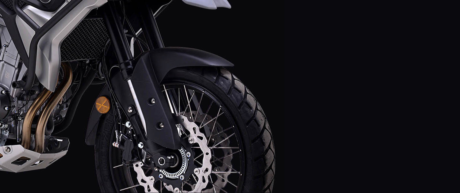 Τα Radial ελαστικά της Metzeler είναι της σειράς TOURANCE με πέλμα 30% off-road, 70% on road, διαστάσεων 10/80R19 μπροστά και 150/70R17 πίσω.