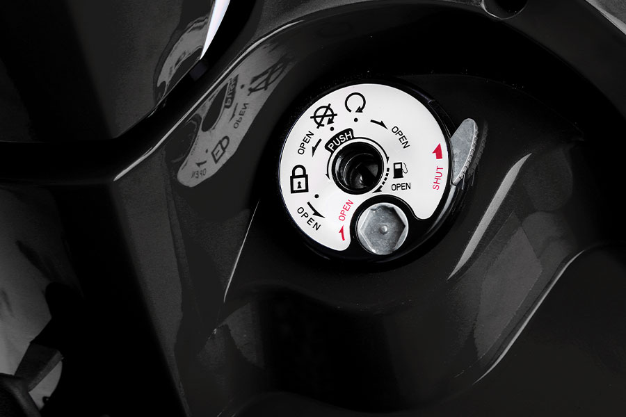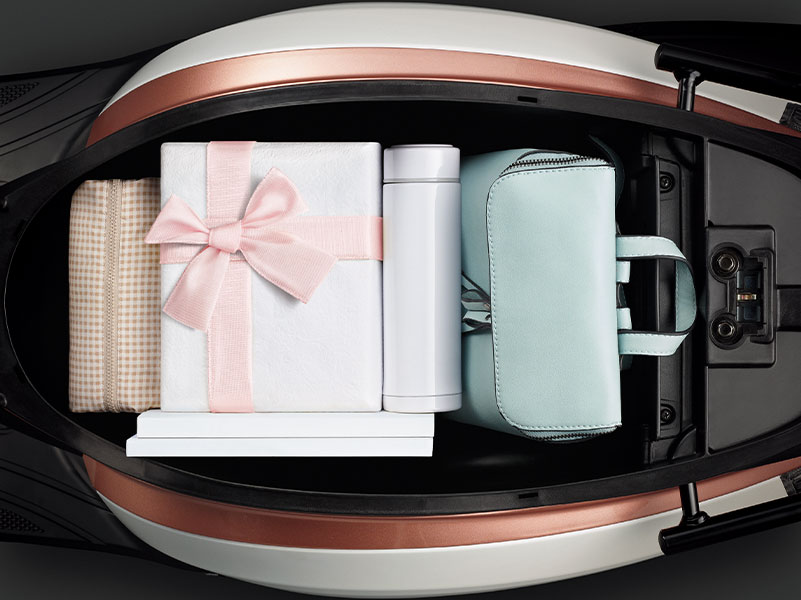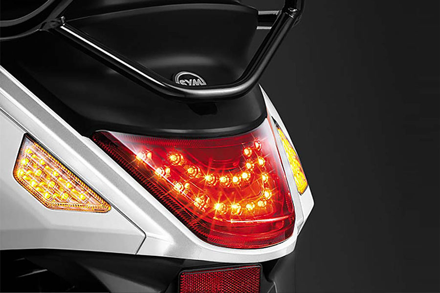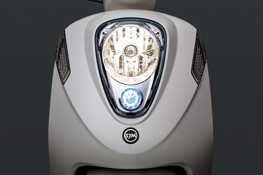 Η πολύ δυνατή δέσμη της μεσαίας σκάλας, έντασης 22.500cd, σε συνδυασμό με τα εννέα LED που αποτελούν τα φώτα θέσης, κάνουν αφενός το e-MIO 50 να ξεχωρίζει και αφετέρου να παρέχει μέγιστη ασφάλεια κατά την οδήγηση σε συνθήκες χαμηλού φωτισμού.