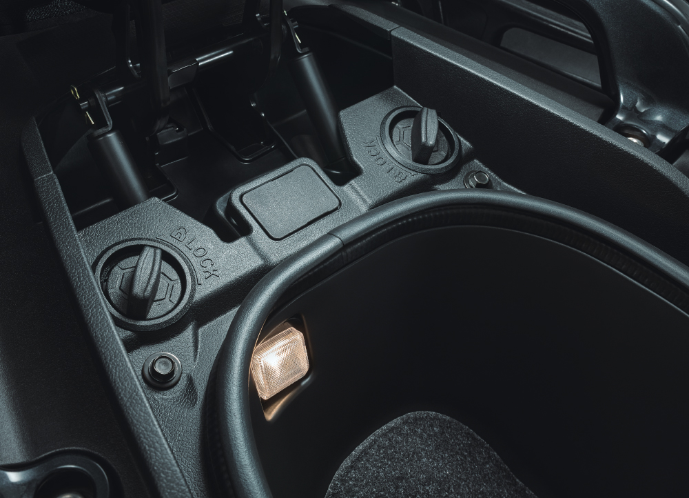 Ο αποθηκευτικός χώρος 37 λίτρων κάτω από τη σέλα είναι πρακτικός και πλήρως εκμεταλλεύσιμος, με εσωτερικό φωτισμό για εύκολη πρόσβαση στο σκοτάδι. Εκεί βρίσκονται και οι εργονομικά τοποθετημένοι διακόπτες για την εύκολη απασφάλιση των πλαϊνών βαλιτσών.